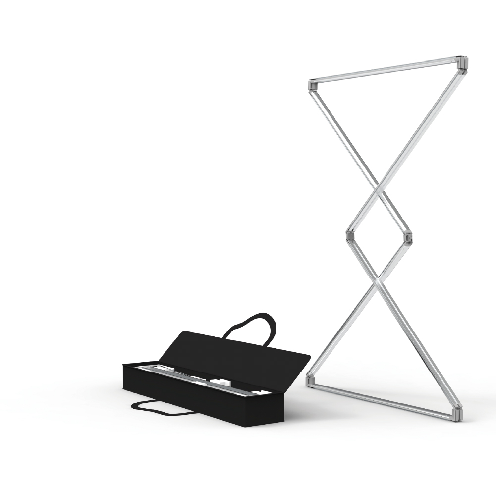 Die bedruckbaren Textilbespannungen sind mit einem Silikonkeder versehen und lassen sich mühelos am Rahmen befestigen. Je nach Bedarf stehen blickdichte oder dehnbare Stoffvarianten zur Auswahl. Der Aufsteller ist in mehreren Formaten erhältlich und eignet sich für einseitige sowie doppelseitige Darstellungen.