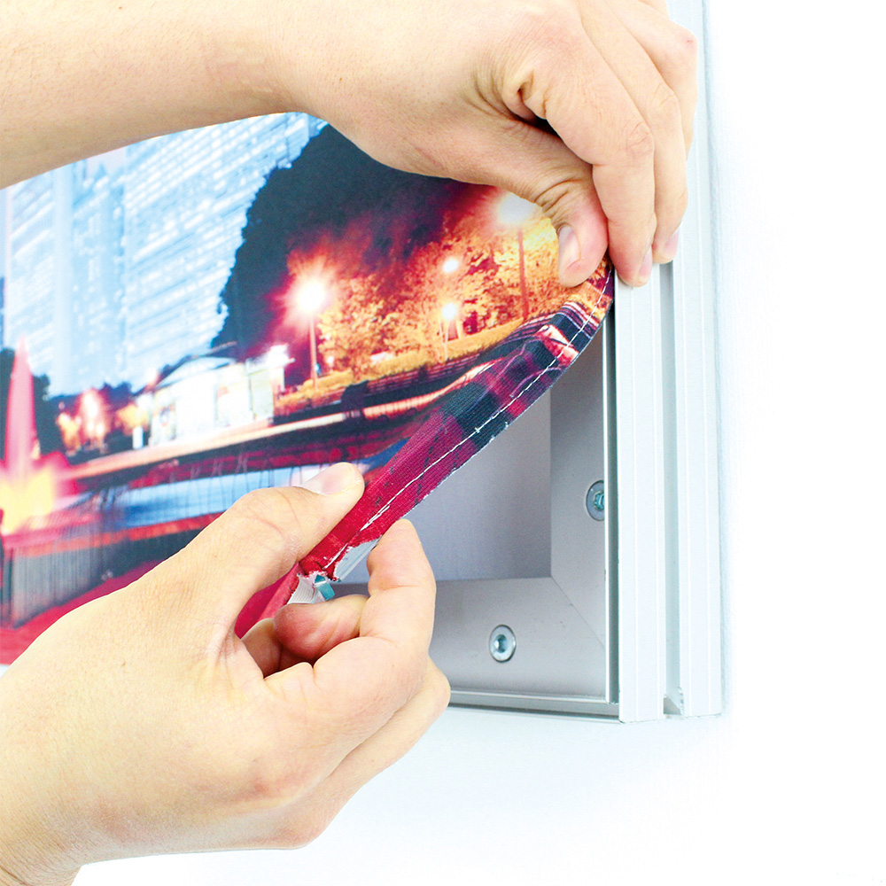 Textilspannrahmen Stele freistehend von fodiled-shop.de in München, die sich ideal zur Präsentation im Point-of-Sale, auf Messen oder Events eignen.